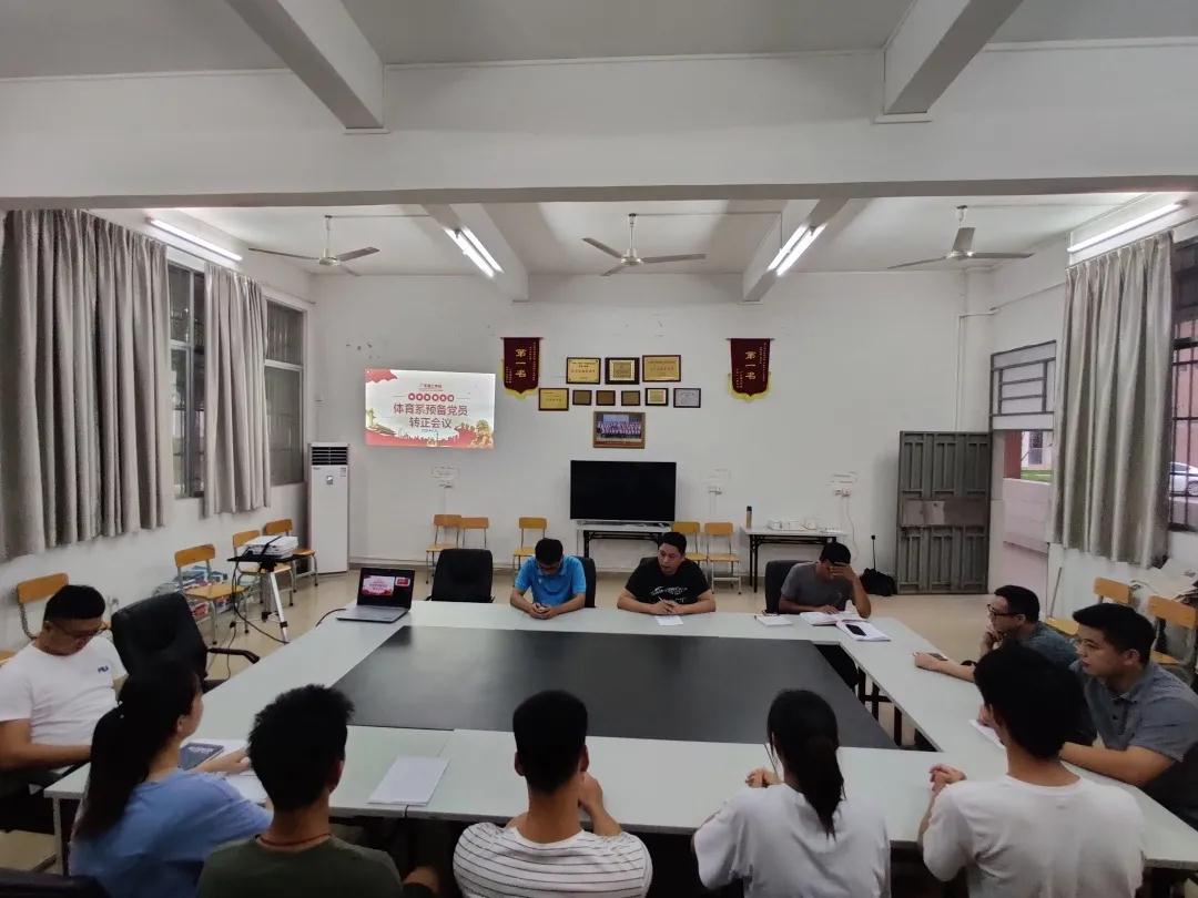 2020年6月9日,体育系在36栋104会议室召开预备党员转正会议。出席本次会议的党员老师有:刘海粟书记,夏磊主任,郭峰老师,谢剑鸣老师,王盈老师,刘鹰老师,杨波老师,徐天泽老师以及17级8位预备党员员工。转正大会由杨波老师主持。