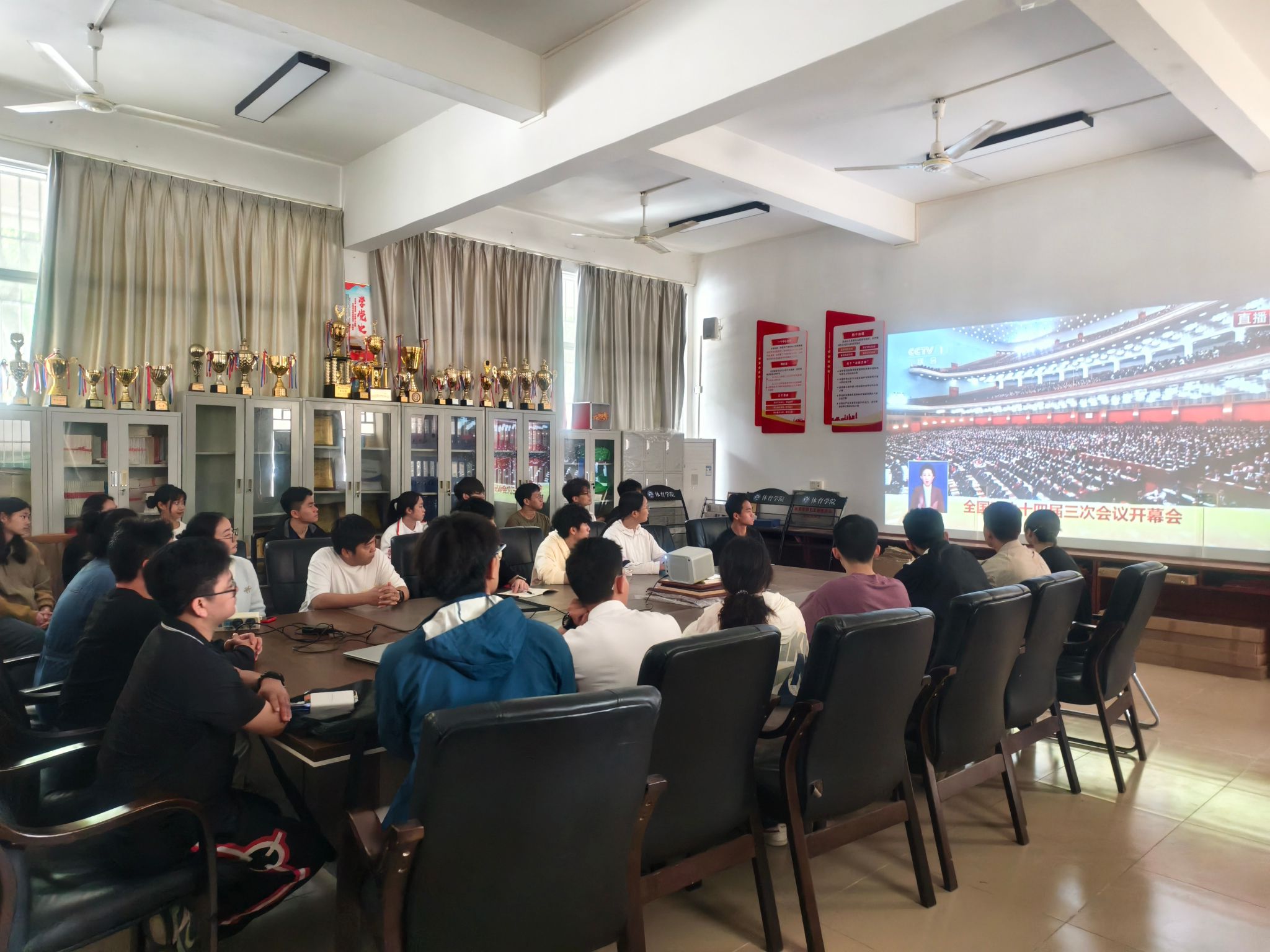本网讯(太阳成集团tyc151cc)2025年3月4日下午3时,全国政协十四届三次会议在庄严的国歌声中隆重开幕。公司党总支组织全体党员、发展对象、员工干部在会议室集中收看了开幕会现场直播(鼎湖校区党员集中于实训楼111课室进行开幕会直播观看),认真聆听了王沪宁主席所作的全国政协常委会工作报告。党总支书记夏磊、副书记李江华参加集中收看。
