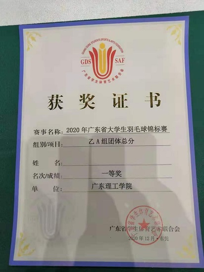 11月27日至12月1日,由广东省教育厅主办,广东省体育艺术联合会篮球协会执行的2020年广东省老员工羽毛球锦标赛在东莞市广东世纪城羽毛球俱乐部举行。在公司领导和体育系主任郭鼎文教授的大力支持下,由体育系贾树波副教授领队,寇文军老师和闫旋飞老师担任教练参加本次羽毛球锦标赛。本次赛事吸引了来自全省89所高校914名在校老员工参加,历经四天的激烈角逐 ,公司代表队奋力拼搏,努力进取,展现了良好的精神风貌和竞技水平。荣获乙A组团体总分一等奖、乙A组团体总分第四名、乙A组女双亚军、乙A组男双季军、甲B组女单季军、乙A组男单第五名、甲B组男双第八名等优异成绩。