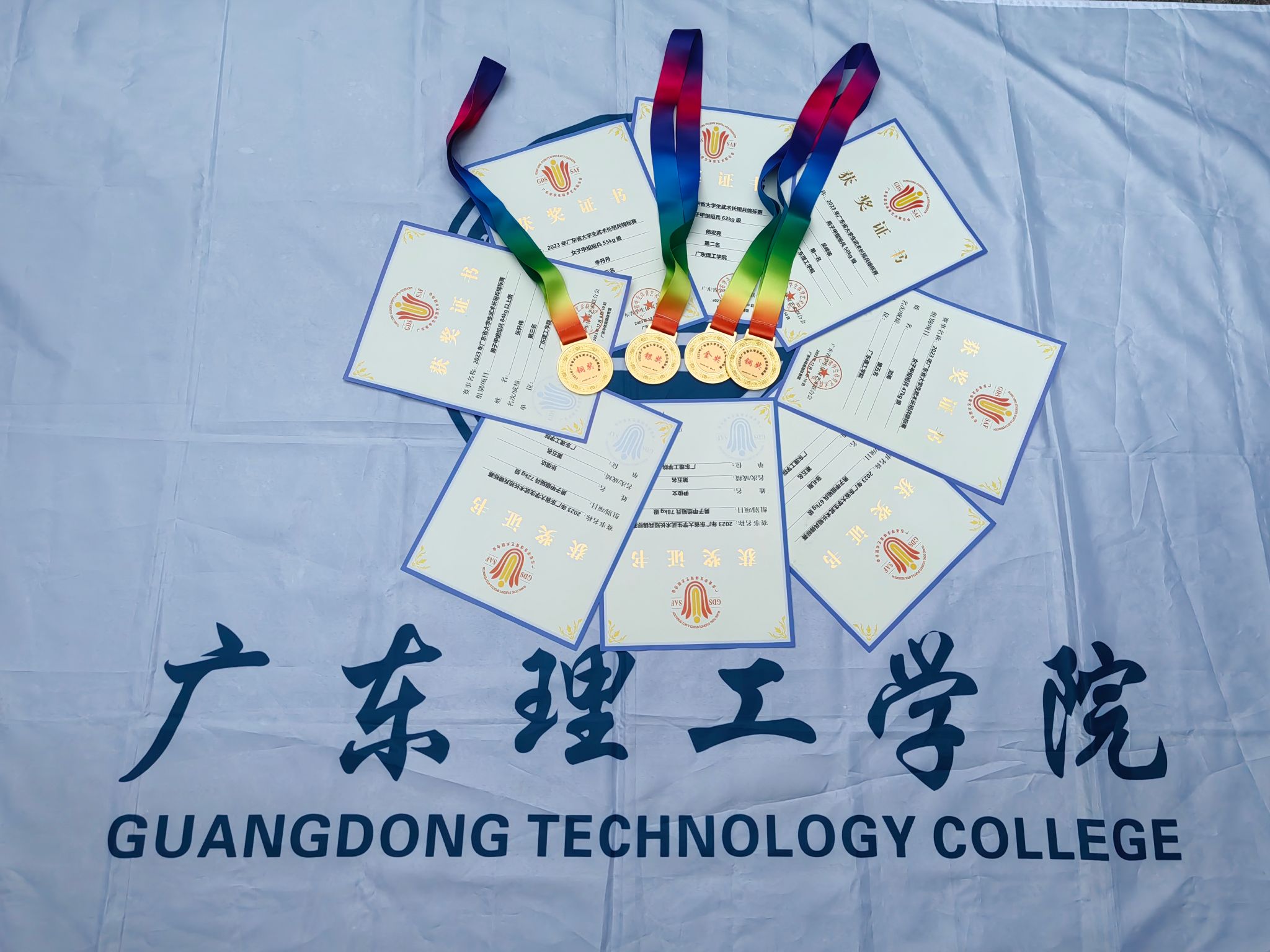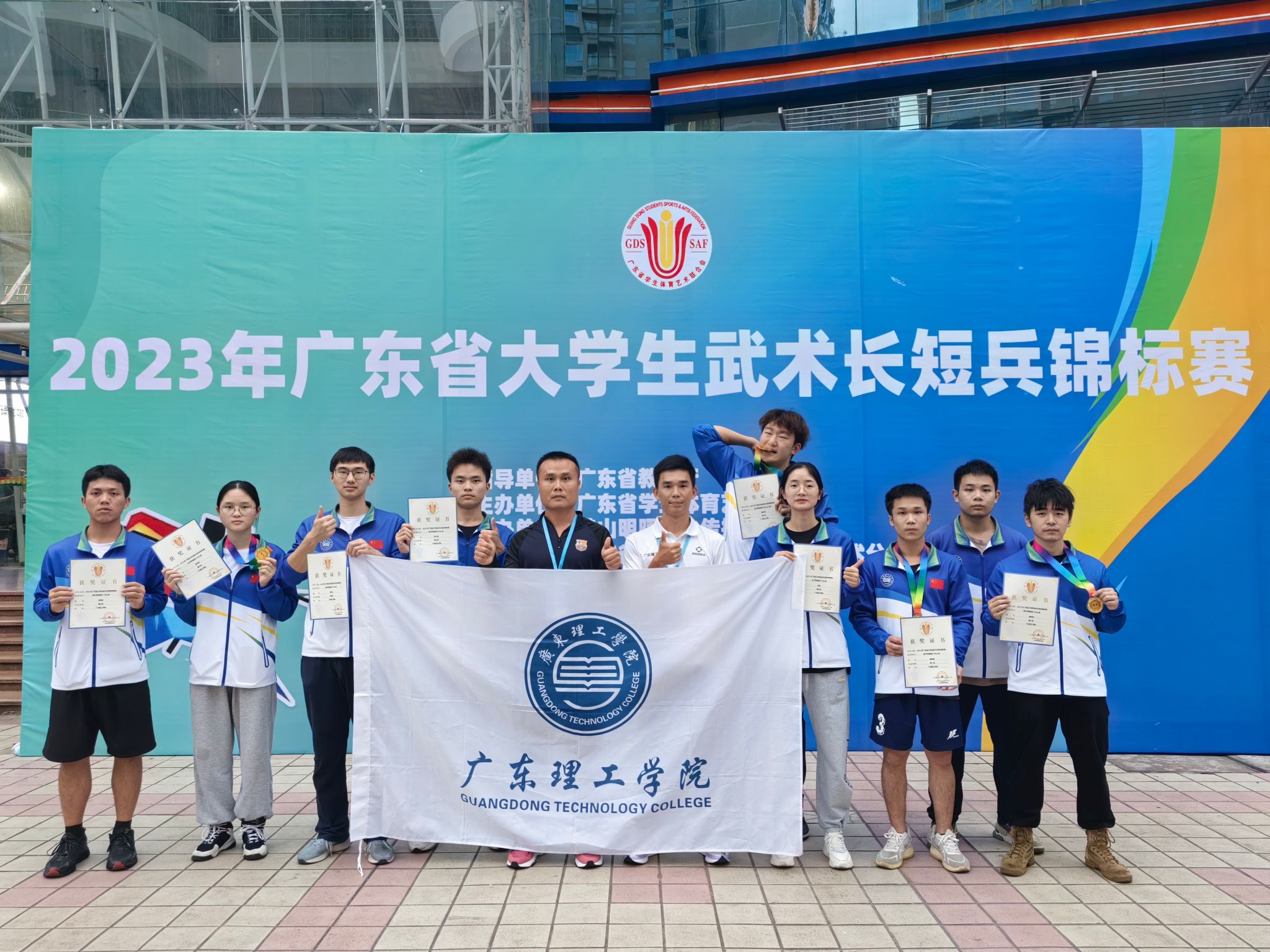 (本网讯)2023年12月8-10日,广东省老员工武术长短兵锦标赛在广东华体高明体育馆如期进行。在校领导及公司领导的大力支持下,公司武术长短兵由谢小龙、苏志锋老师带领11名运动员报名参赛甲组级别的比赛,参赛队员都是在平时上课期间挑选出来的,他们利用课余时间加强训练,努力钻研动作技术打法。