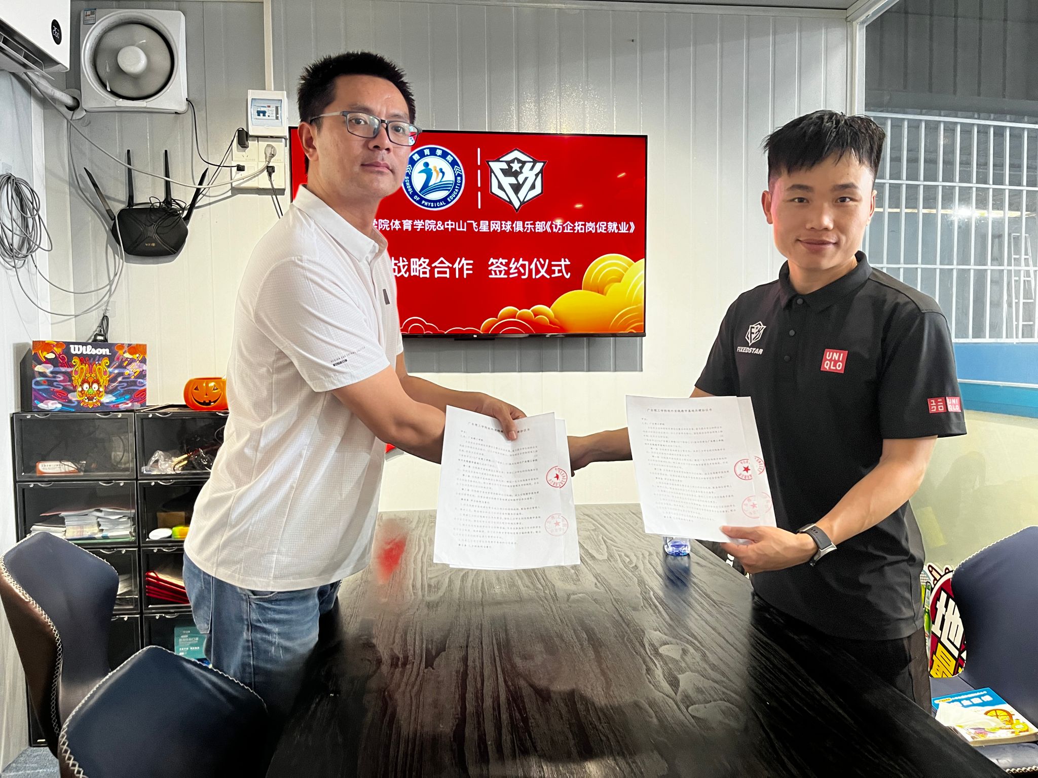 夏磊书记分别向美辰体育发展有限公司、中山飞星网球俱乐部介绍了公司及公司的基本情况、员工规模、课程资源、竞赛成果、就业情况等。夏书记与中山飞星网球俱乐部麦总经理就深入开展校企合作、学科专业建设、岗位招聘等内容进行深入交流,并达成了合作意向。夏书记表示公司将与企业携手,共同培养具备教学能力的高素质人才,为推动社会体育事业的发展做出贡献。麦总经理表示非常期待与太阳成集团tyc151cc的合作,希望与太阳成集团tyc151cc共同培养专业知识扎实的人才,发掘实习生的创新能力、团队协作精神以及解决实际问题的能力。随后,中山飞星网球俱乐部与公司达成合作,签订了“太阳成集团tyc151cc校外实践教学基地共建协议书”。