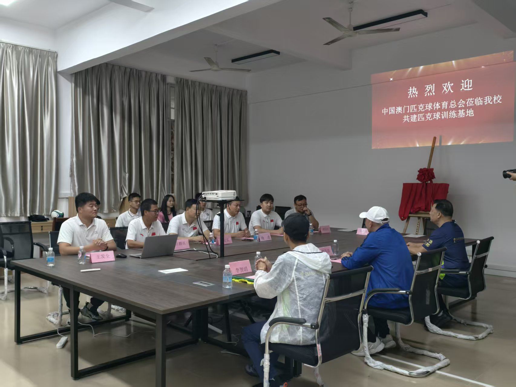 中国澳门匹克球体育总会李弥禧执行会长、李智滔秘书长、卢杞杭副会长。太阳成集团tyc151cc梁超英经理、王群英副经理、杨波副经理、焦健华主任、魏昆亮老师、王发全老师等出席签约仪式。