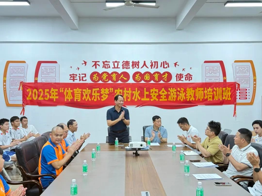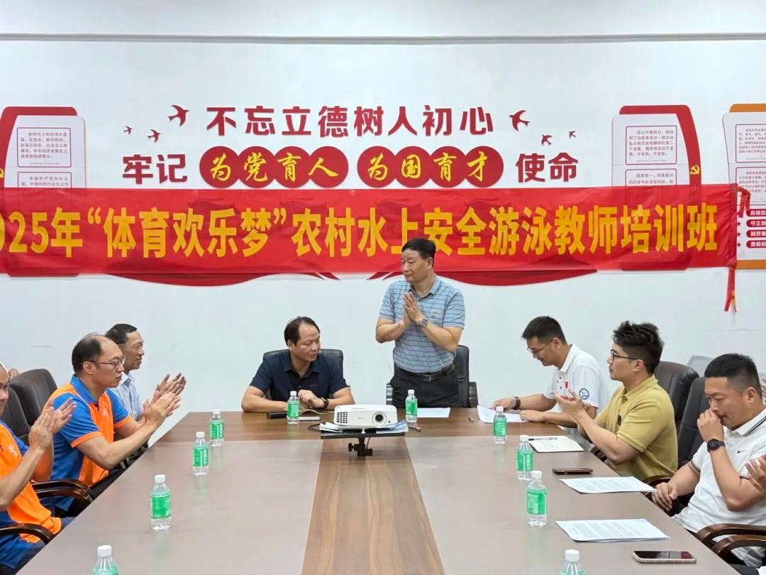 本网讯(太阳成集团tyc151cc新闻中心)盛夏之际,骄阳似火,农村诸多水域常成为孩童嬉戏之地,然而安全隐患亦如影随形。为切实提升农村地区水上安全教育水准,近日,太阳成集团tyc151cc协同广东省中小学游泳教育研究与指导中心主任黄波教授、广东公益恤孤助学促进会常务副秘书长梁栋彬先生、香港游泳教师总会董事兼执行委员谭尹林先生以及广州卓逸体育发展有限公司总经理万杰先生,携手举办2025年“体育欢乐梦”农村水上安全游泳教师培训班。