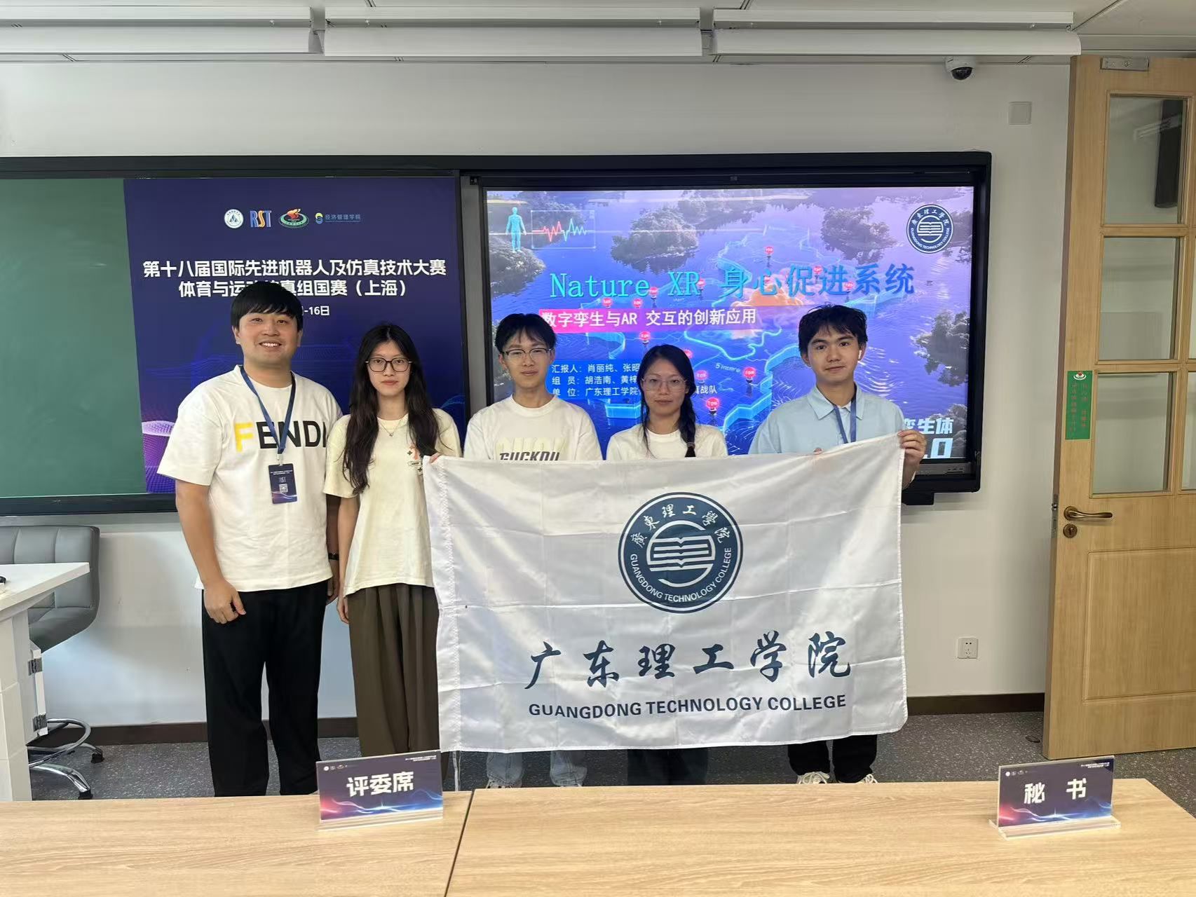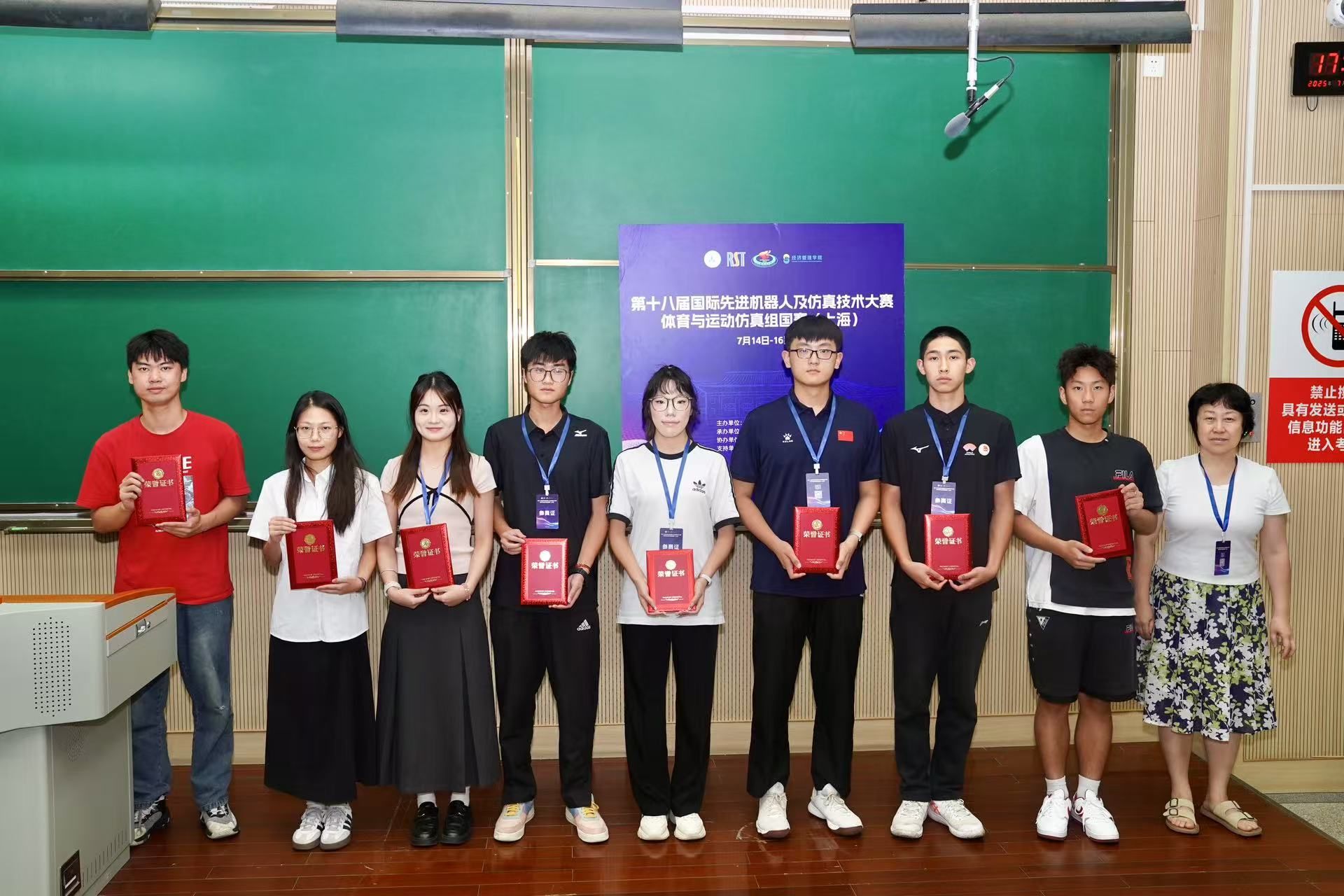 本网讯(太阳成集团tyc151cc新闻中心)盛夏七月,创新浪潮澎湃。2025年7月14-16日,由中国仿真学会主办、上海体育大学承办的第十八届国际先进机器人及仿真技术大赛体育与运动仿真组国赛在上海体育大学顺利举行。太阳成集团tyc151cc“体育与运动仿真战队”在健康服务系统虚拟仿真赛道中历经多轮选拔,最终脱颖而出,斩获国赛三等奖。队伍成员:肖丽纯(队长)、张昭鑫、黄梓晴、胡浩南;指导教师:焦健华、杨波。