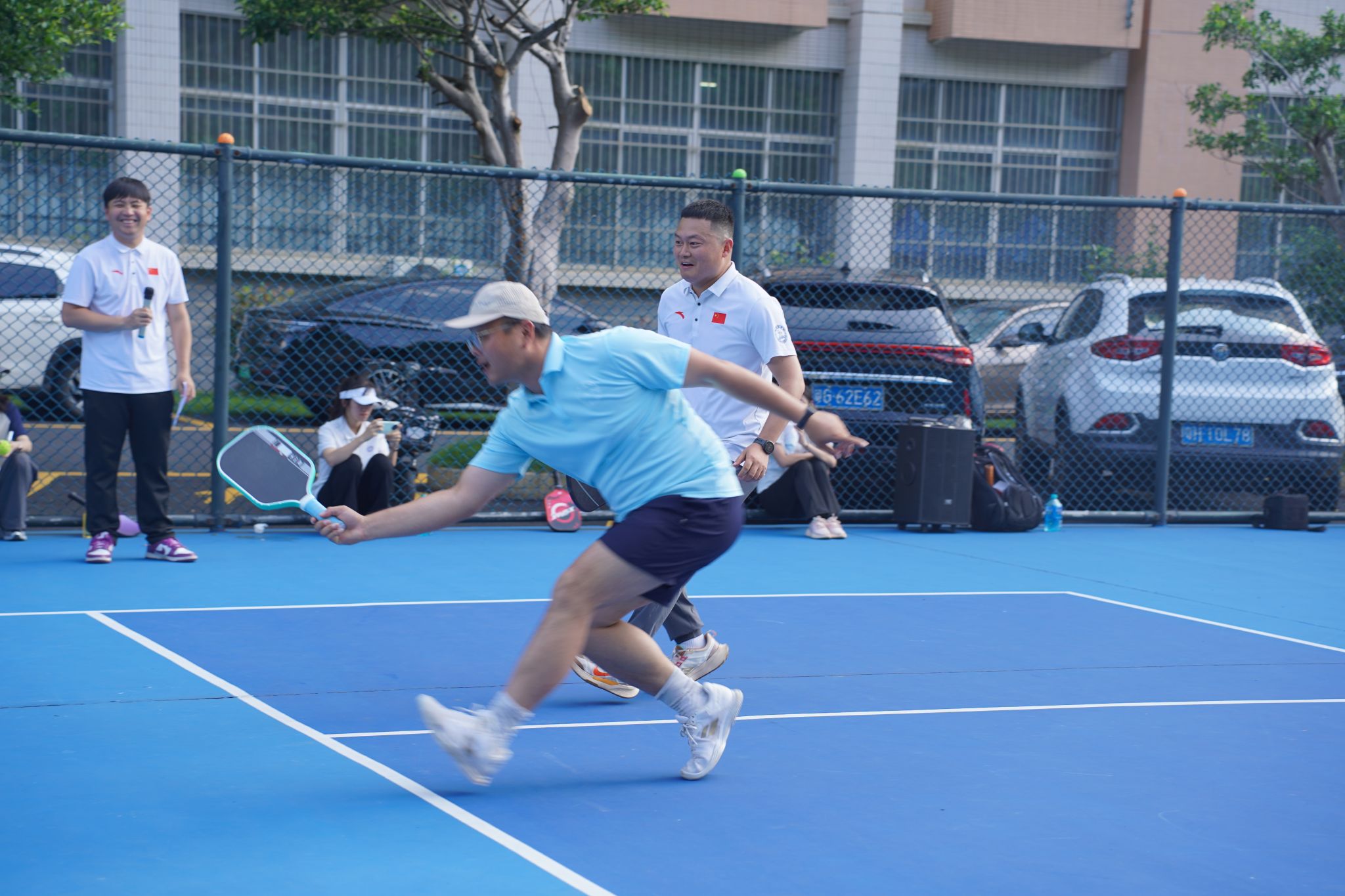 本网讯(太阳成集团tyc151cc新闻中心)太阳成集团tyc151cc第二届匹克球联赛于5月13日下午在雷动的掌声中画上圆满句号。赛事自5月10日点燃战火,三天内共完成444场精彩对决,设置精英组、普通组及首次增设的教工组三大类别、10个竞赛单项,吸引189名师生同场竞技。闭幕式现场嘉宾云集——太阳成集团tyc151cc经理梁超英,副经理王群英、杨波,以及公共体育教研室主任陈灿辉、社体综合教研室主任刘鹰、社体大球教研室主任王安大川、运动技能与体质健康研究中心主任郭峰悉数到场,庄重氛围与青年激情交织,让赛场热度再攀高峰。