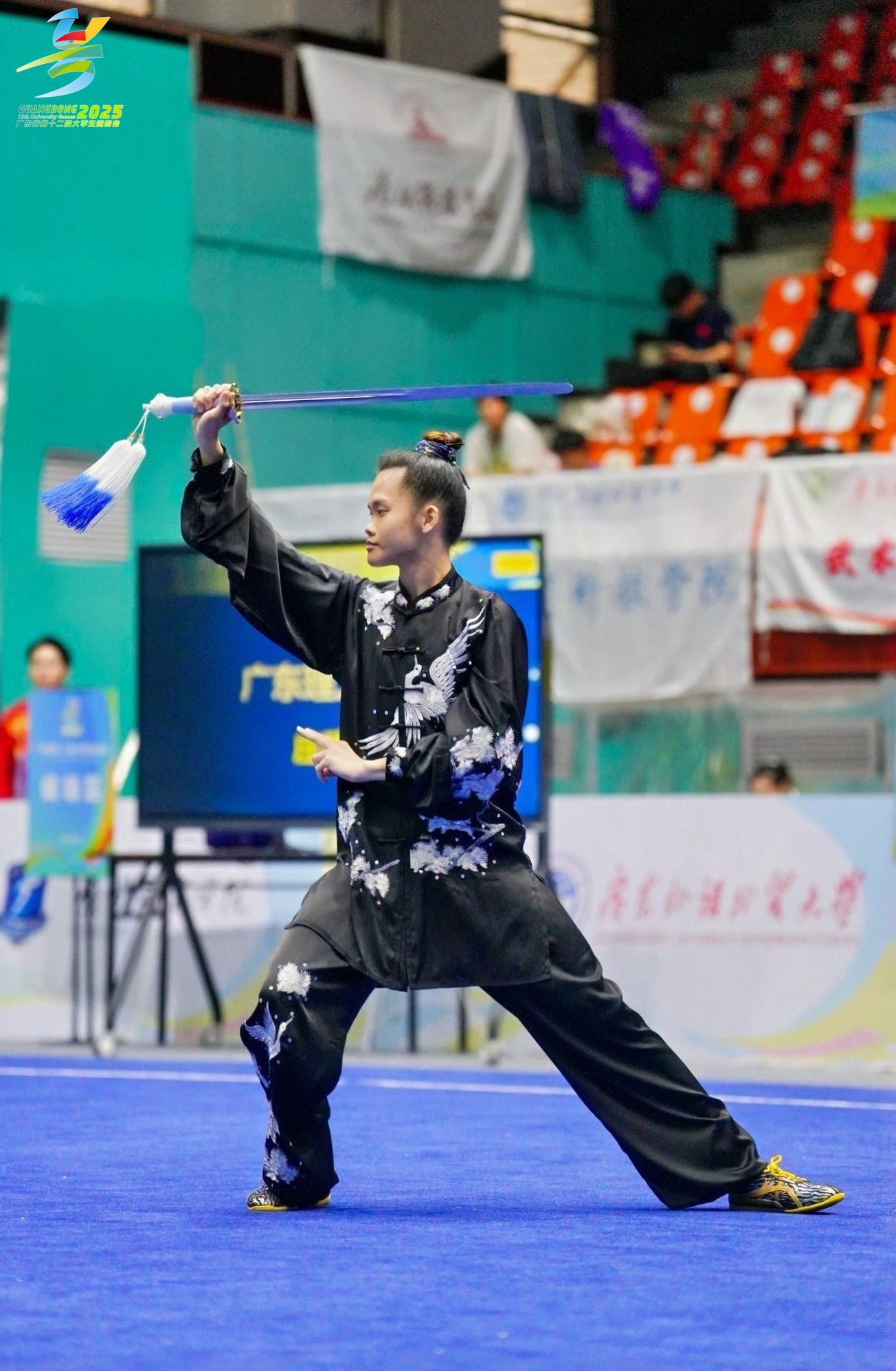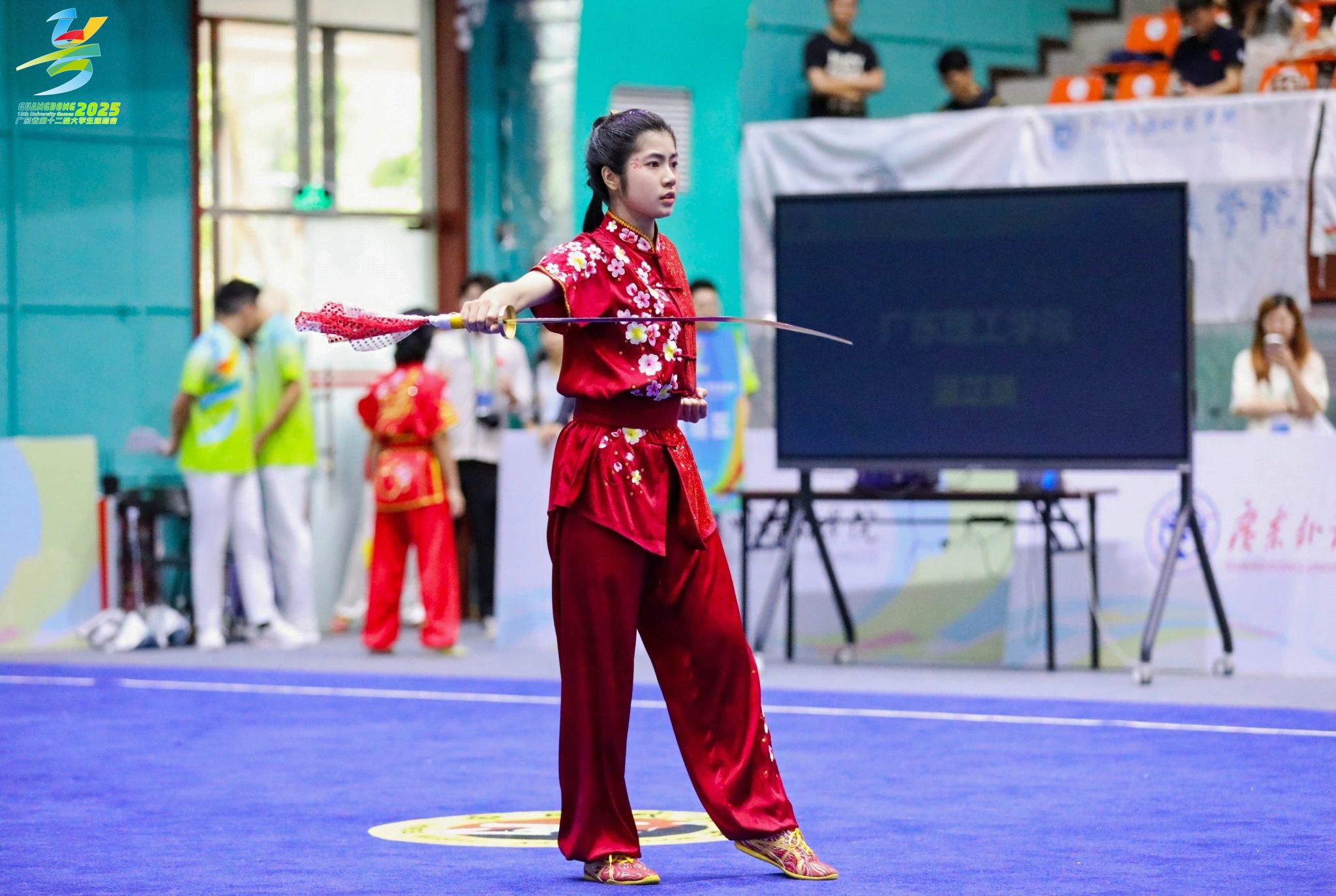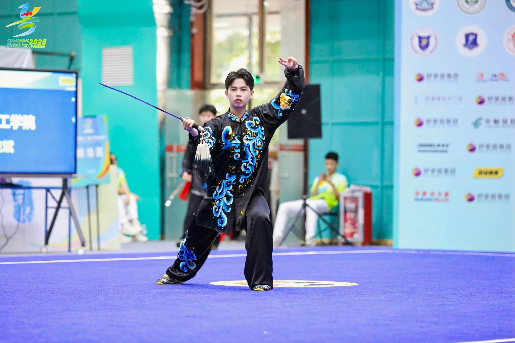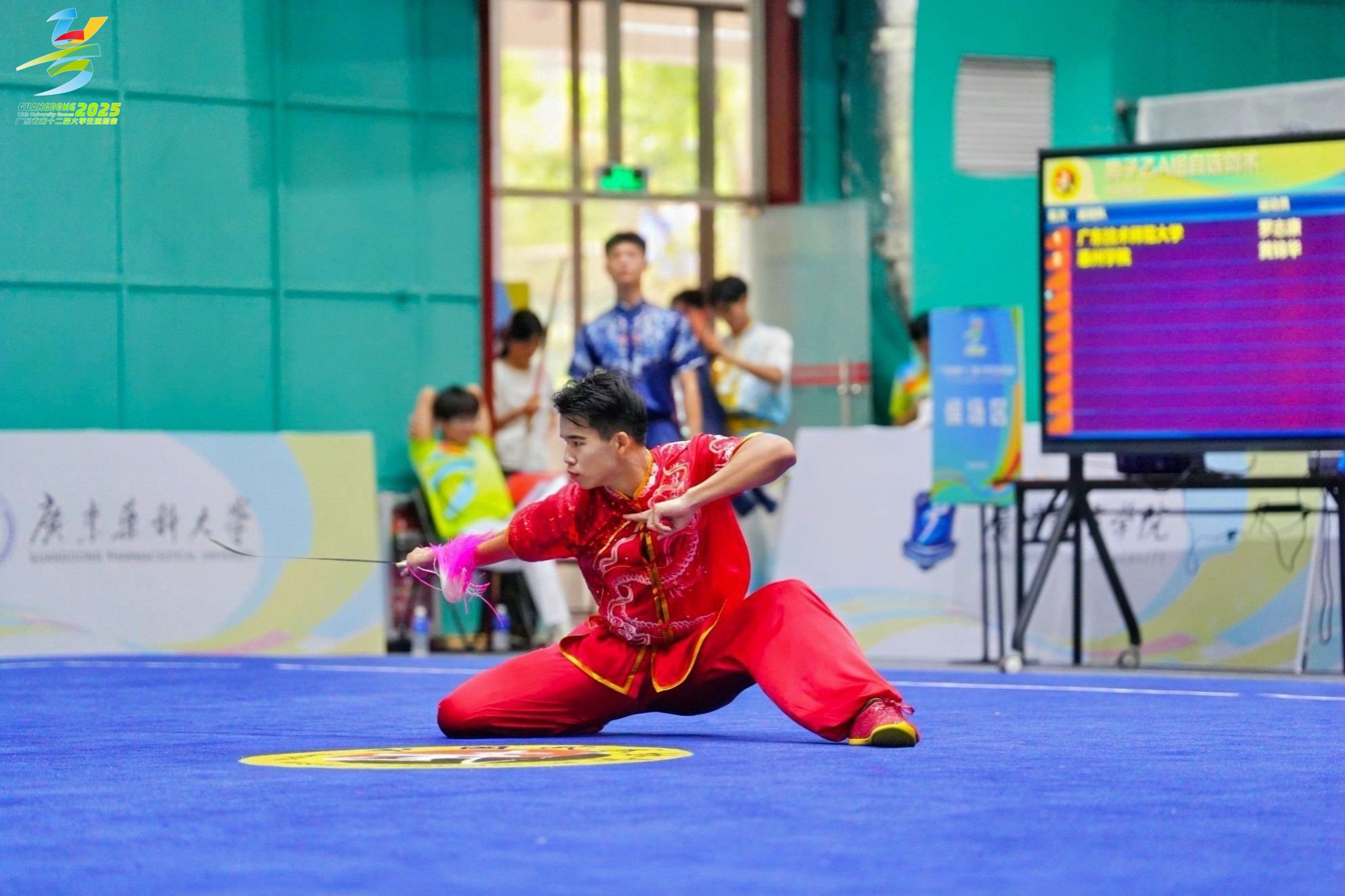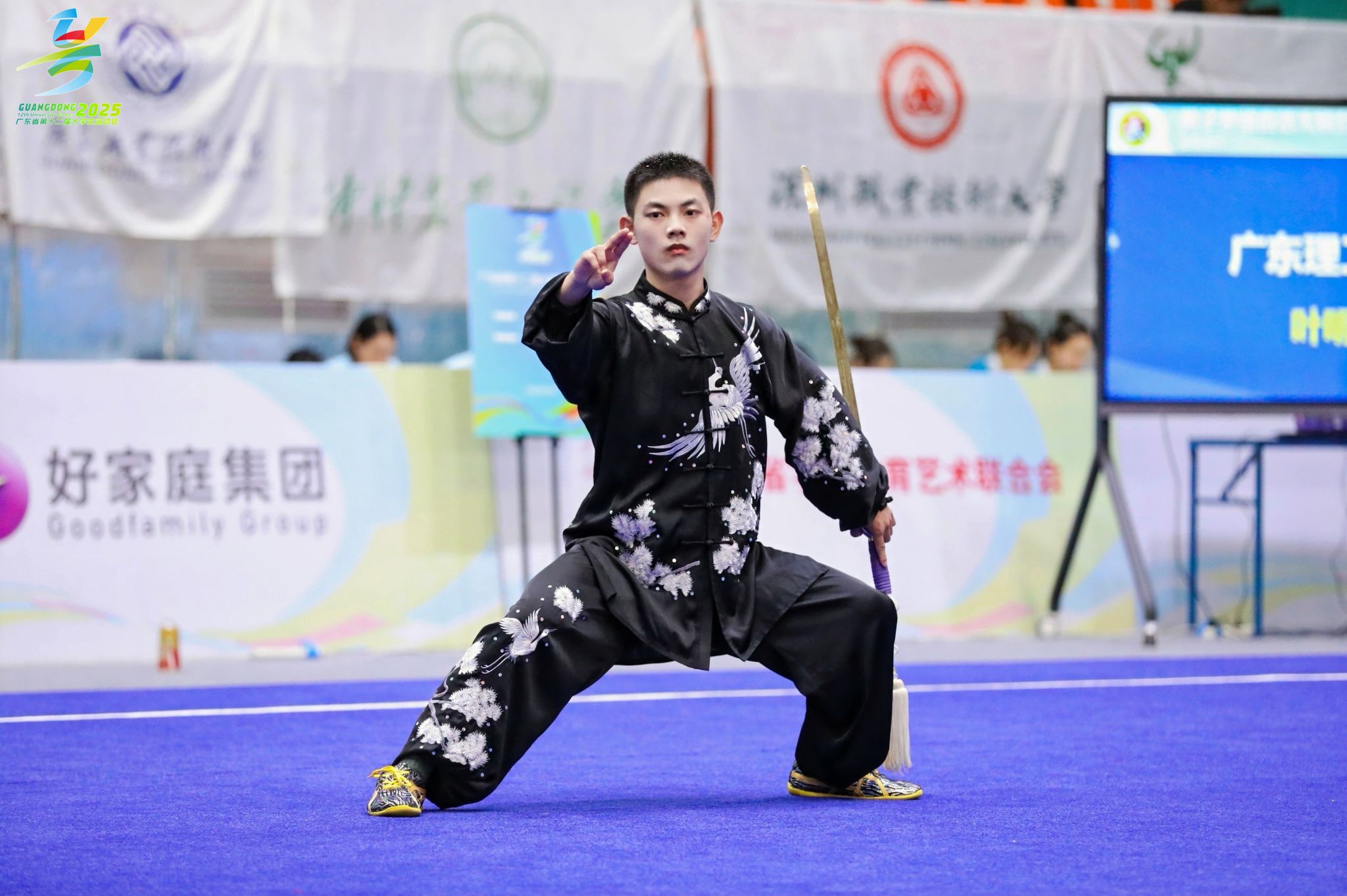 据悉,本次武术套路比赛由广东省教育厅、广东省体育局共同主办,是省内高校武术项目的最高级别赛事,比赛设长拳、南拳、太极拳、刀术、剑术、棍术、枪术等多个项目,竞争异常激烈。来自全省数六十多所高校640名的武术健儿齐聚一堂,以武会友,切磋技艺。