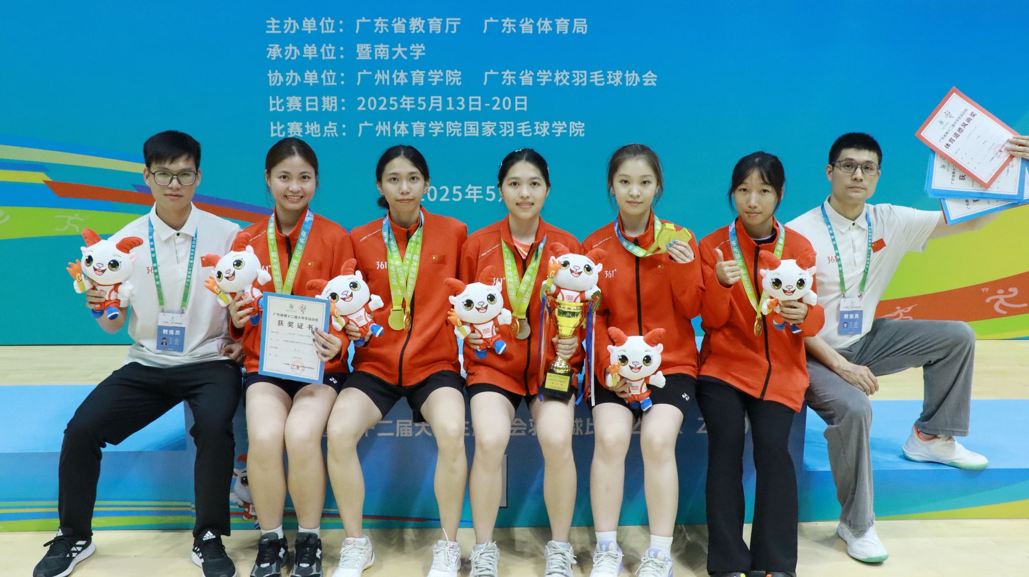 女子团体冠军——团队一路高歌猛进,小组赛连胜广州大学、广州体育职业技术公司和东莞理工公司,以全胜战绩晋级;半决赛2:0力克华南师范大学;决赛对阵东道主广州太阳成集团tyc151cc,在双打失利的不利局面下,二单选手梁碧莲顶住压力,在先丢一局的情况下实现逆转,最终以2:1战胜对手,勇夺金牌!